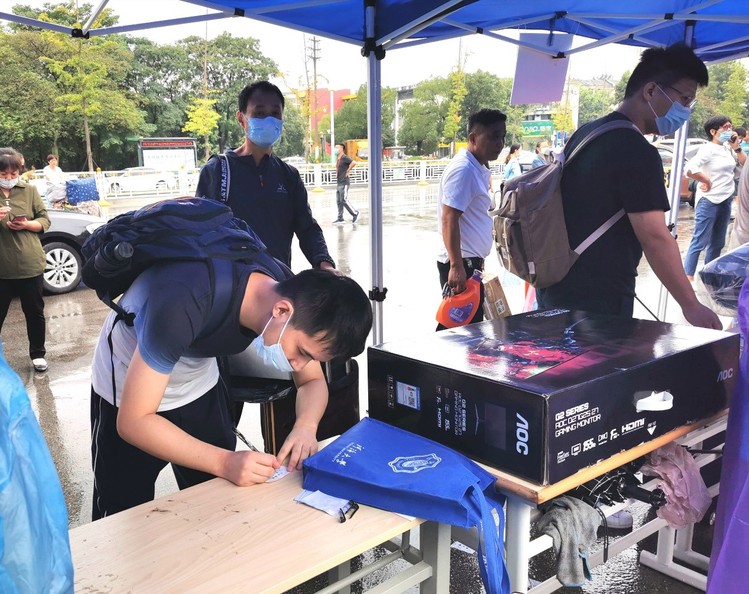 为全面做好疫情防控和迎新工作,学校组织了由在校生组成的志愿者队伍。志愿者们早早地等候在校园门口,热情的为新生答疑解惑、搬运行李,为他们顺利报道保驾护航。同时为方便新生出行,学校精心准备了摆渡车接送。