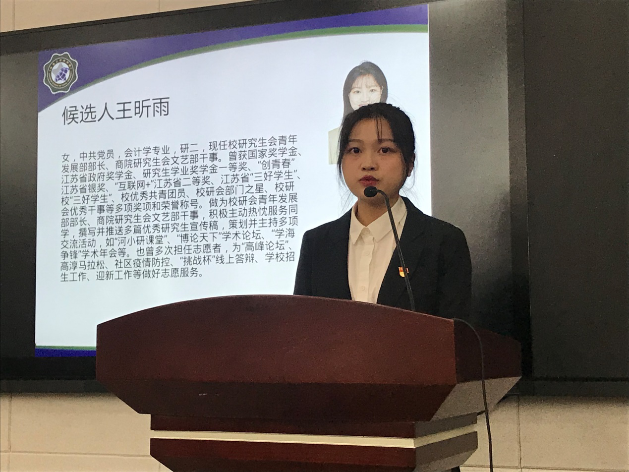 校研会代表杨一帆同学代表校研究生会发表讲话。她指出,国产无码 研究生会的各项工作都交出了满意的答卷,在思想引领、学术科研、社会实践等多个方面取得了优异的工作成绩。同时,她希望国产无码 研究生会紧跟时代步伐,进一步加强组织建设,不断创新工作思路,着力提高服务水平,努力开创研究生会工作的新局面。