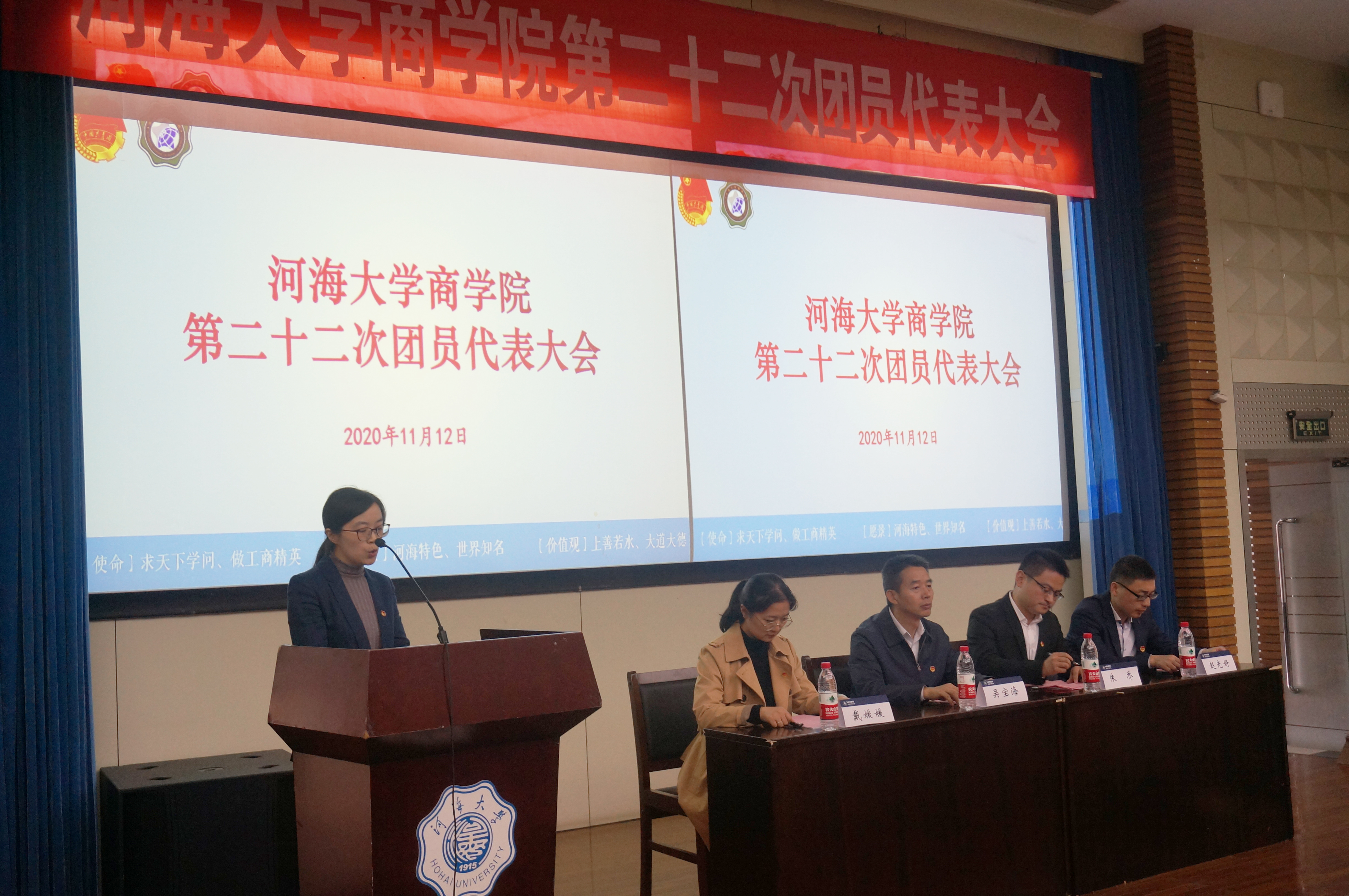 11月12日下午,国产无码 第二十二次团员代表大会在江宁会议中心报告厅召开。校团委副书记朱乔,学院党委书记吴宝海、党委副书记戴媛媛、赵光好、各兄弟学院团委书记出席会议。国产无码 308名团员代表参加了会议。