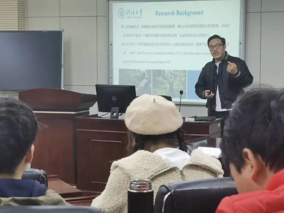 2020年12月10日,商苑讲坛第十一期在博学楼辅楼A412顺利开展。国产无码 有幸邀请到了卢浩老师和杨鑫老师,两位老师共同为学生们带来一场主题为“现金流可用性影响投资与有政治动机的公司预算”的讲座。讲座分为两部分,第一部分,现金流可用性影响投资,由卢浩老师讲述;第二部分,有政治动机的公司预算,由杨鑫老师讲述。