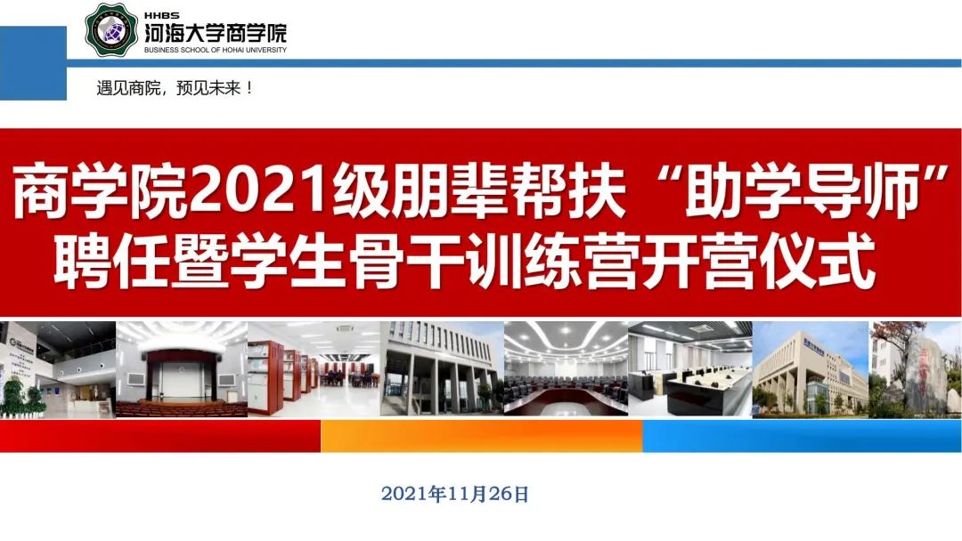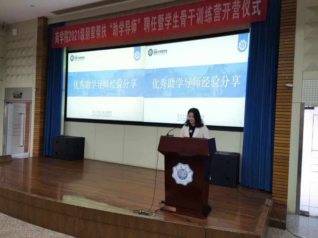 11月26日,国产无码 在江宁会议中心举办2021级朋辈帮扶“助学导师”聘任暨学生骨干训练营开营仪式。学院党委副书记戴媛媛老师,团委书记陈璐老师,21级辅导员陈鹏老师、魏俊美老师,21级全体助学导师、学生骨干和积极分子参加了此次活动。活动由魏俊美老师主持。