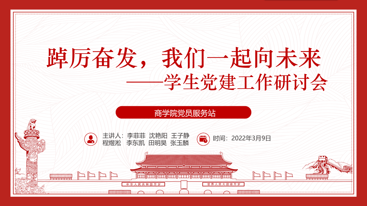 本次学生党建工作研讨会,系统梳理了学院党建工作的年度安排与工作重点,进一步加强了学院学生党支部建设,强化了学生党员的党员意识,端正了入党积极分子的入党动机,为2022年度学生党建工作有序开展奠定了扎实的基础。2022年,我们将继续同心协力,踔厉奋发,一起向未来,以优异的工作成绩喜迎党的二十大胜利召开。