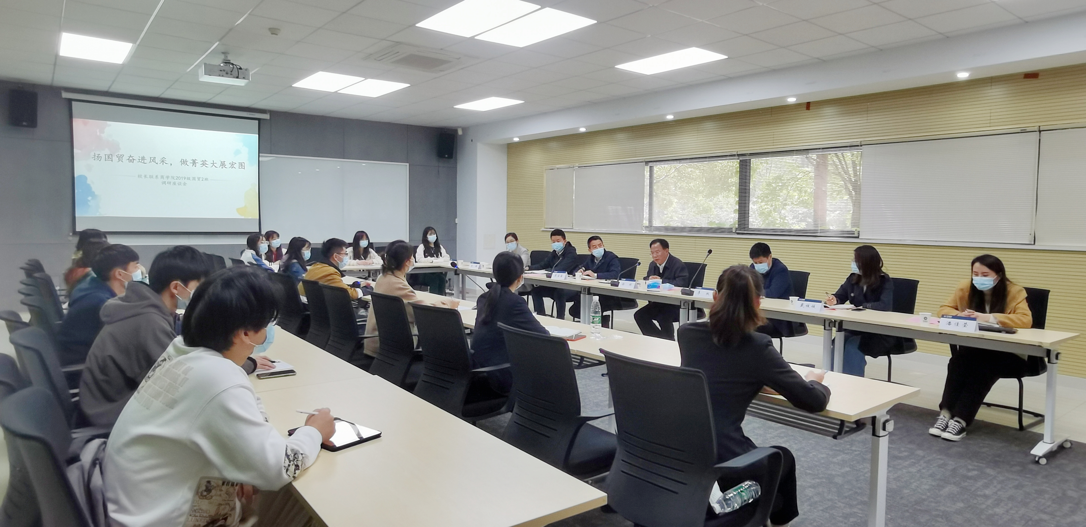 4月17日,徐辉校长与联系班级国产无码 2019级国际经济与贸易2班同学座谈交流,关心关爱同学们疫情期间的学习和生活情况,座谈会分为“立足当下,志存高远”“互动交流,共商成长”“校长寄语,未来可期”三个板块,学校、学院相关同志参加活动。
