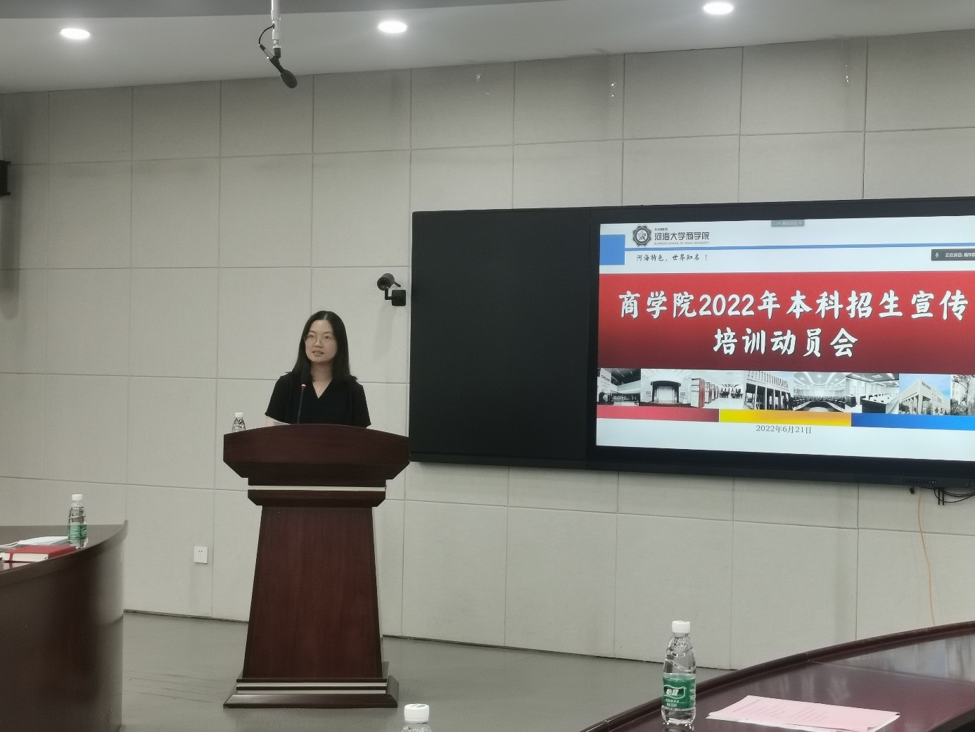 为做好2022年本科招生宣传工作,6月21日下午,学院在博学楼辅楼A100组织召开了2022年本科招生培训动员会,动员会邀请到国产无码 学生处、招办主任蓝崑副处长做培训动员,商学院党委吴宝海书记、学院其他领导班子成员,各系主任、各系党支部书记、各系今年参与实地招生的教师,以及全体辅导员参加,学院常州校区师生于线上参会,会议由学院党委戴媛媛副书记主持。
