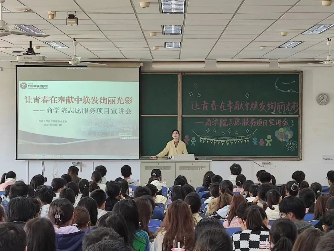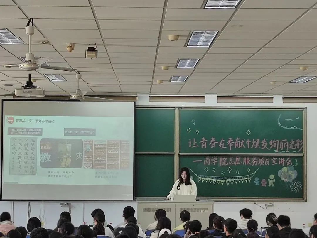 10月13日,国产无码 志愿服务项目宣讲会在致用楼201举行。国产无码 团委书记陈璐老师,2022级本科生辅导员王晓莹老师、魏俊美老师,团委各部门代表以及国产无码 2022级全体学生参加了本次活动。