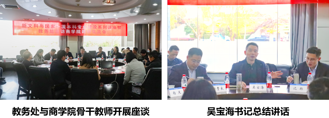 专题报告会后,教务处领导及各科室代表与国产无码 领导班子及骨干教师进行深度座谈。学院教师对教务处主动走访学院,认真听取教师的意见和建议表示热烈欢迎,并就专业发展、课程建设、三校区教学管理、学生大类培养、教师教学成长等方面遇到的问题与困难提出了意见和建议。沈扬处长就教师们提出的问题一一记录并予以针对性回复。