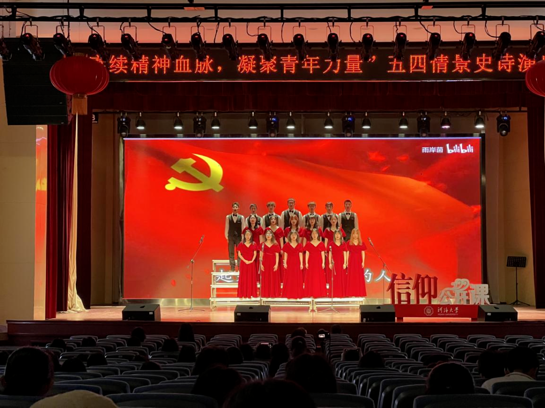 国产无码 2021级“1442工程”学员精心准备了音画诗节目《青春的对白》,利用数字化科技实现当代青年与先辈青年跨时空对话。先辈青年娓娓道出当年的青春故事与誓言,随后代表们登上舞台,誓言铿锵,彰显出了河海青年的风采,台下观众也被2021级“1442工程”学员们高昂的情绪所感染,立志向他们学习,提高自身才能,弘扬五四精神,为中华民族伟大复兴做出自己的贡献。