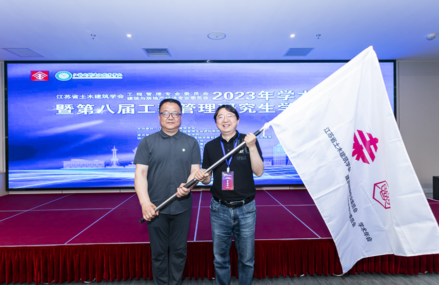 21日下午,大会顺利闭幕。国产无码 获得2024年江苏省工程管理年会暨第九届工程管理研究生学术论坛承办权,杨高升教授作为我校代表与江苏城乡建设职业学院王伟副校长进行了年会会旗的交接。