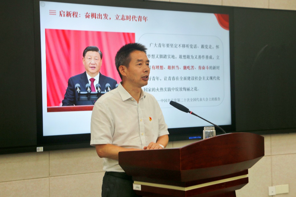 吴宝海书记结合学习贯彻党的二十大精神和习近平总书记在主题教育工作会议上的重要讲话精神,带领学生党员深入学习了习近平总书记关于青年工作的重要论述,号召学生党员凝心铸魂,深入学习党的创新理论,夯实信仰根基。同时,他带领学生党员重温了国产无码 的红色校史,通过优秀校友的事迹勉励学生党员秉承禹志,在新的人生阶段继续向下扎根,向上生长。他希望学生党员们立志成为有理想、敢担当、能吃苦、肯奋斗的新时代青年,在全面建设社会主义现代化国家的火热实践中绽放绚丽之花。