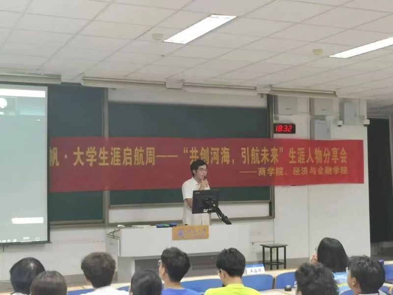 史东骏,经济与金融学院国际经济与贸易专业16届校友,现担任诺德基金管理有限公司创新投资部项目经理。他着重介绍了金融工程专业的内容,让金融工程专业的新生们细致地了解了金融体系的相关内容,为同学们的目标选择、就业方向提供了宝贵的建议。对于专业学习,他认为提升自己的绩点、提高编程能力十分重要,只有打牢专业基础,才能在未来工作中有所优势。对于大学生活,他建议大家多参加活动和竞赛以锻炼能力,多实习以明确方向。