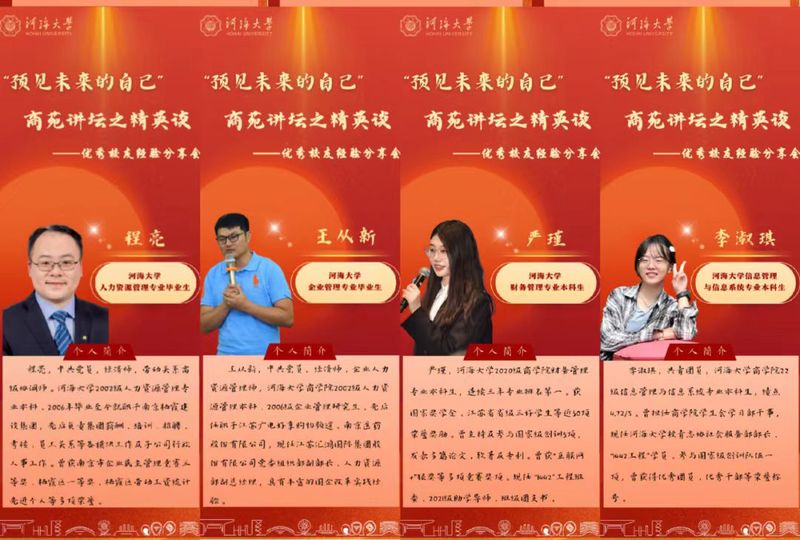 第二会场面向23级财务管理、人力资源管理和信息管理与信息系统专业的同学们,由李淑琪同学、严瑾同学、王从新校友、程亮校友四位优秀代表主讲,潘佳莹老师进行主持。
