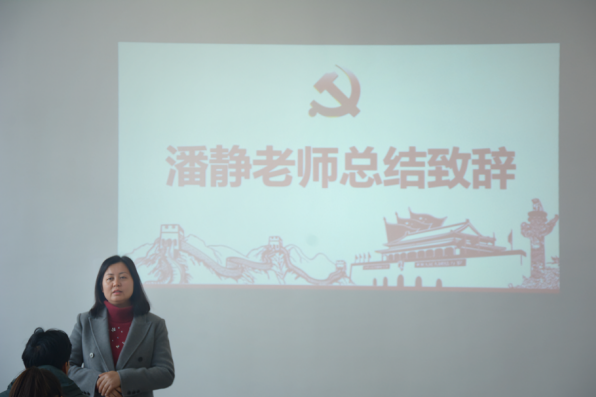 最后,潘静老师进行总结致辞,从生涯规划、未来发展和朋辈互助三个方面为团员和学生党员指明了前进的方向,同学们要不断加强自身学习与修养,努力成长为堪当民族复兴大任的新时代青年。