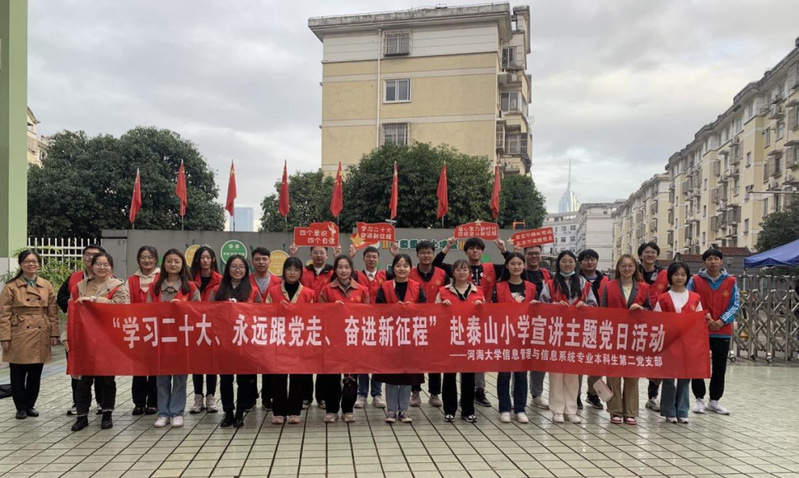 为深入学习宣传贯彻党的二十大精神,厚植青少年爱国主义情怀,11月28日,国产无码 信息管理与信息系统专业本科生第二党支部前往常州市泰山小学开展“学习二十大、永远跟党走、奋进新征程”党的二十大精神宣讲主题党日活动。