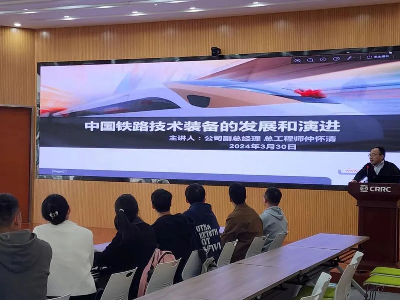 活动进入到经验历程分享环节,中车戚墅堰机车有限公司副总经理、总工程师兼技术中心主任、知识产权总监仲怀清先生以“中国铁路技术装备的发展和演进”为主题向同学们分享中国铁路客货运内燃机车行业发展历史和和公司发展历程,使得同学们对于创新创业的时代性和进步性有了更为深刻的认知。