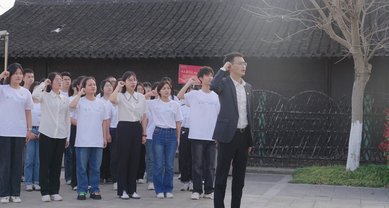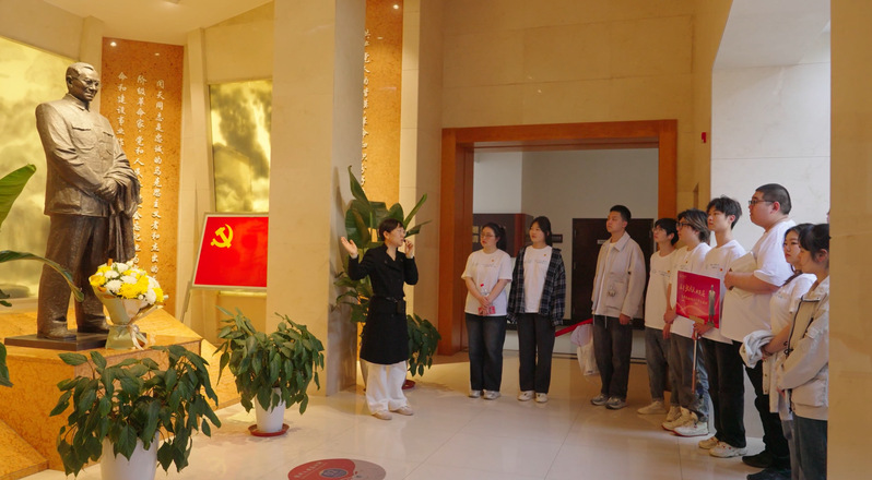 座谈交流会后,学生代表在张闻天铜像前敬献鲜花,表达对张闻天先生的尊敬与缅怀。在国产无码 2021级辅导员陈鹏老师的带领下,党员同志在誓词墙前重温入党誓词,牢记初心使命。最后,同学们从张闻天的事迹中汲取力量,在故居的各个角落喊出“传承有我”的誓言,将传承闻天精神的坚定信念布满这个岁月沉淀的地方,以青年之声诉说百年星火传承。