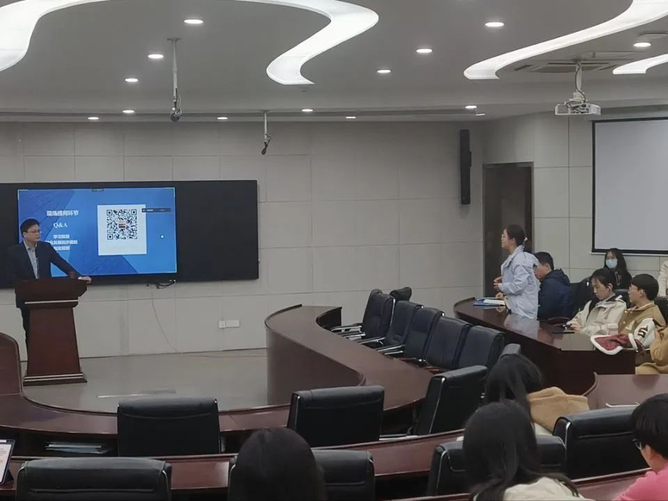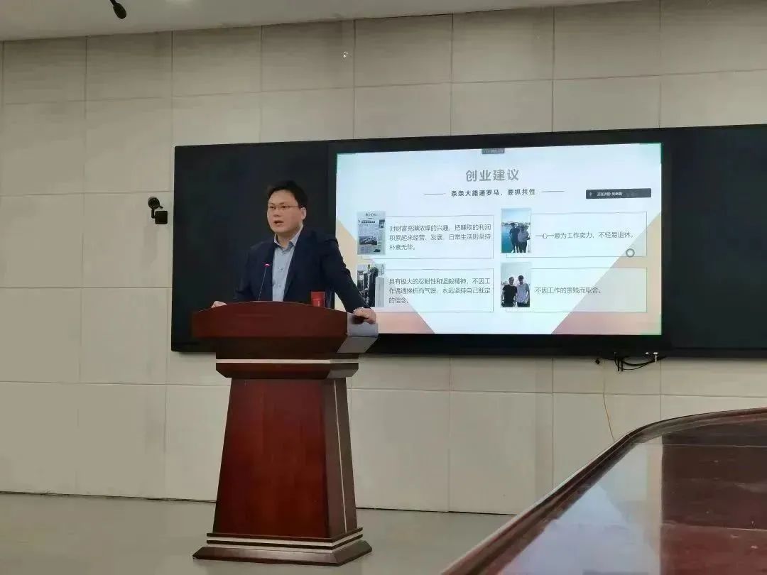 讲座开始,郭登岳老师幽默风趣地进行了自我介绍,从他的读书时的经历和机缘巧合下的创业机遇展开,深入浅出地告诉我们学习的重要性。同时,他讲述了他学生时代的经历,鼓励当代大学生要拥有自驱力:坚持学习、认知清晰和脚踏实地。