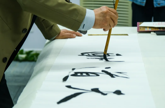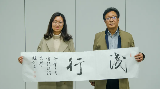 最后,来到了师生互动环节。赵老师现场创作了“天道酬勤”、“观海听涛”、“室雅人和”、“前程似锦”、“慎独”等书法作品,并赠送给同学们。