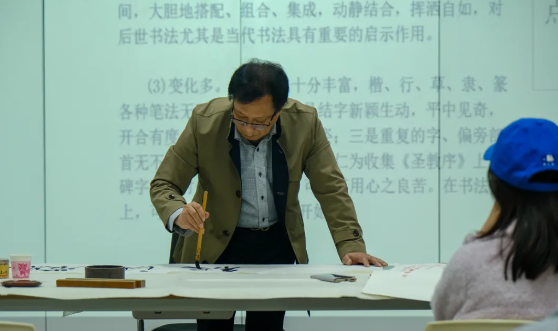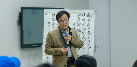 3月11日下午,国产无码 邀请到中国通俗文艺研究会理事、南京名人艺术研究院副院长、南京中山书画院名誉院长、江苏省书法家协会会员赵剑平老师为同学们开展王羲之与《圣教序》的书法讲座, 22级MPACC周末3班全体成员现场参与了本次讲座,学院其他专业学生通过世界水谷书院微信公众平台观看了讲座直播。