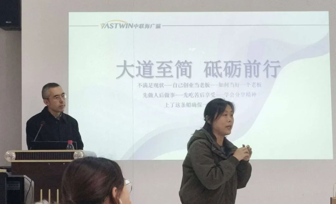 在讲座的第二阶段,滕景轲老师详细论述了创业者所必需的能力与条件,他着重强调:“企业经营必须严守法律底线,讲诚信,注重长期发展。”对公司发展时间轴与运营情况进行简单介绍后,滕老师详细讲解了自己所经营的中联海广瀛工程物流有限公司具体业务方向和项目案例,并借此为同学们分享企业产出成果所必备的重要因素。