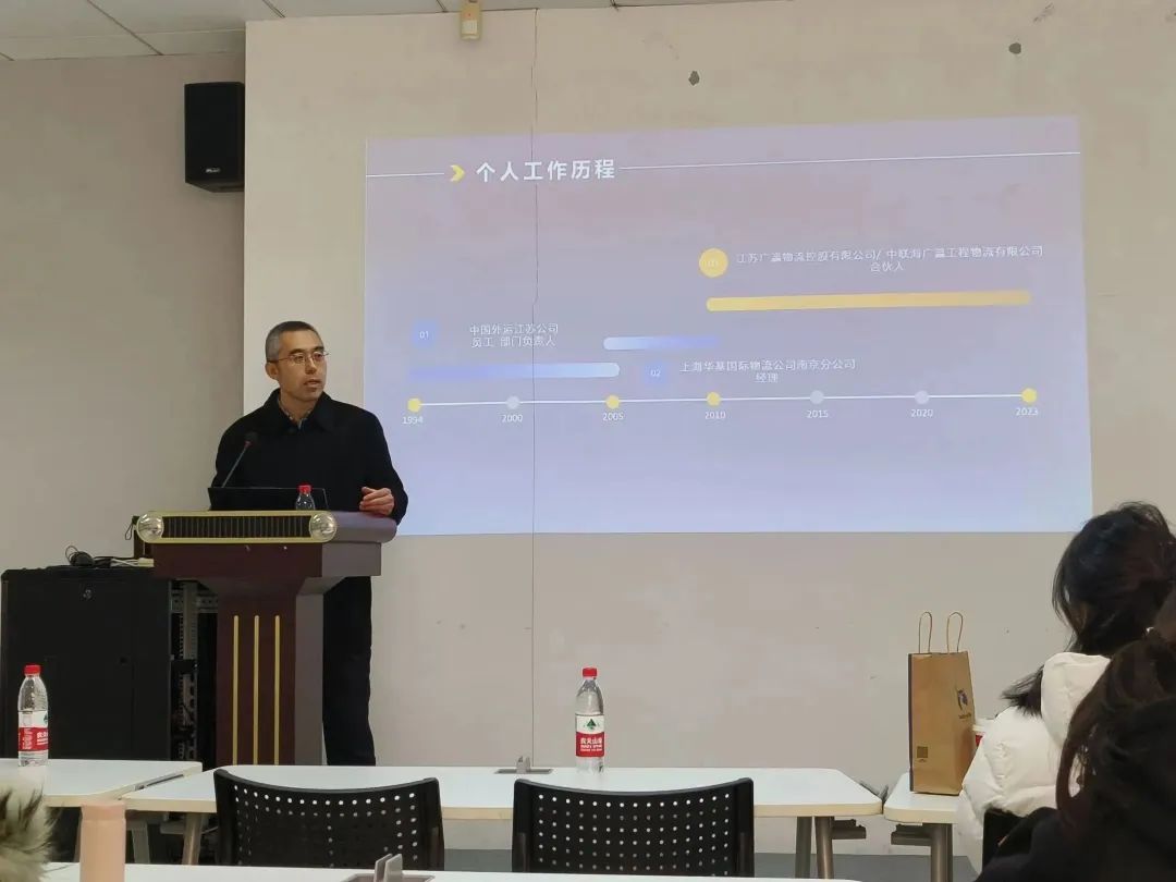 2023年12月1日,国产无码 创新创业训练营系列讲座第七期于博学楼A103顺利举行。本次讲座邀请到中联海广瀛工程物流有限公司的联合创始人滕景轲老师担任主讲人,滕老师作为公司董事副总经理、高级物流师、东南大学专业学位硕士研究生校外指导老师、国产无码 创新创业导师,深耕物流行业三十余年,具备丰富的市场营销与项目管理经验,他以自己的亲身经历为样本,对同学们进行了创业经验总结分享及指导。