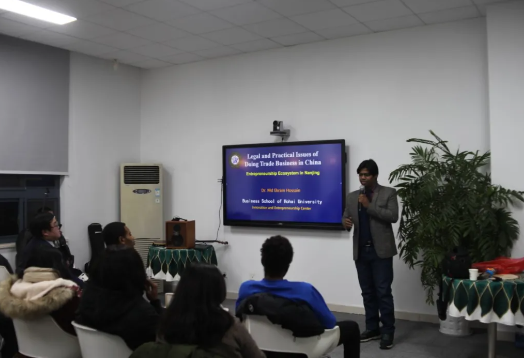 在本期活动中,南京明语堂信息科技有限公司总经理蒋文杰先生首先为国际留学生介绍了南京地区国际创业者基础政策与法律知识,从法律角度解读在宁外国青年如何创业,并就签证的系列问题与可能产生的误解与国际留学生进行了深入交流,解答国际留学生的疑问。