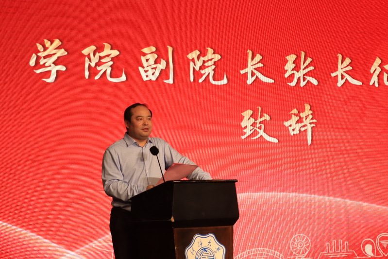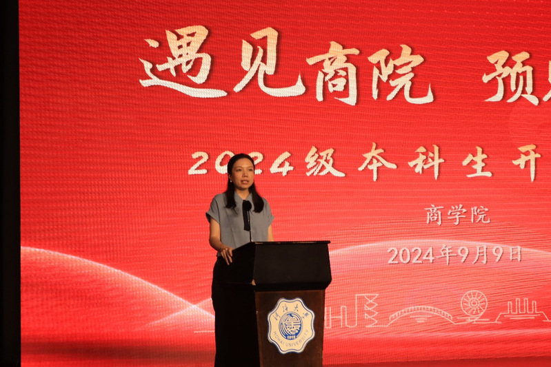 典礼在庄严的国歌声中拉开帷幕。副院长张长征教授首先向2024级本科新同学表示了最热烈的欢迎,向同学们详细介绍了学院的各方面情况,包括学院发展历程、价值体系、平台资源、师生情况、学科发展、组织机构、教学资源、国际认证、人才培养、社会服务、学生活动、校友发展等,张院长鼓励新生要厚植家国情怀、涵养进取品格、夯实过硬本领,成为具有中国灵魂、全球视野、河海特质的高素质商科人才。