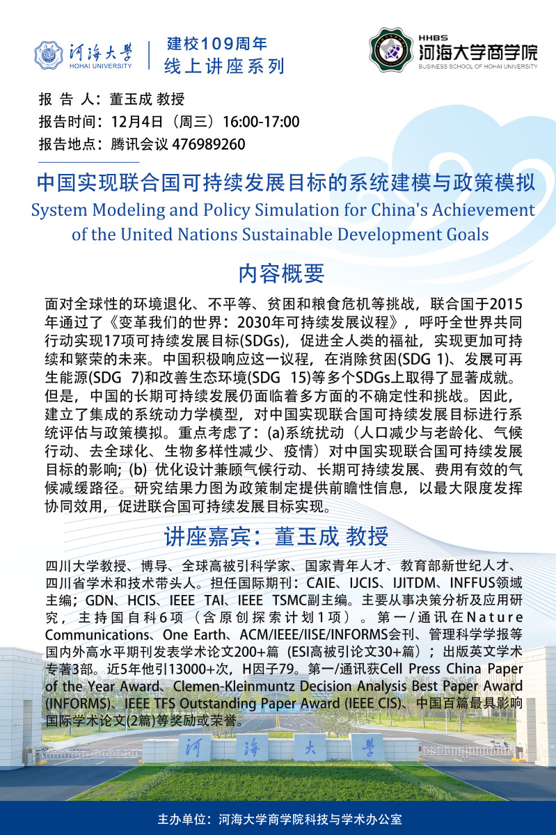 学术讲座通知:中国实现联合国可持续发展目标的系统建模与政策模拟