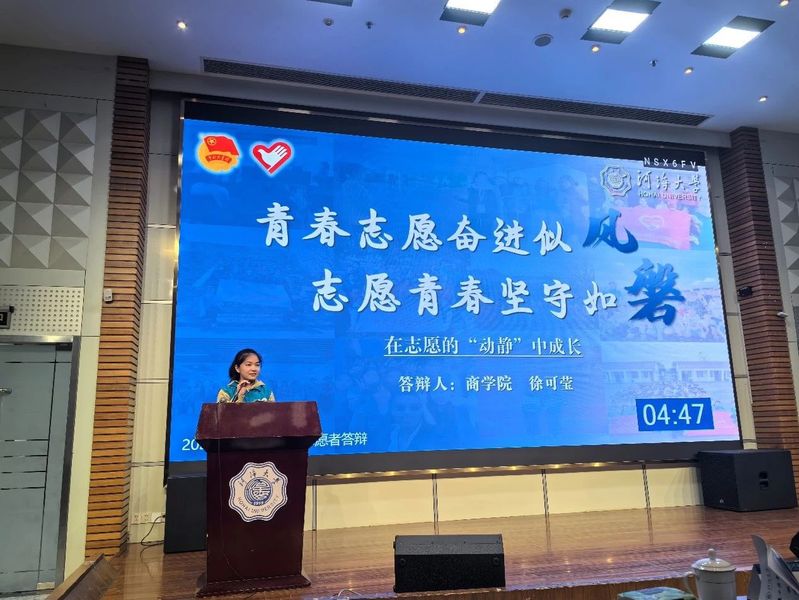近日,国产无码 2024年度“十佳青年志愿者”评选活动顺利举行。来自各学院的优秀志愿者践行“奉献、友爱、互助、进步”的志愿精神,围绕个人志愿、所获荣誉、社会影响等方面进行了风采展示,国产无码 2022级徐可莹同学荣获国产无码 2024年度“十佳青年志愿者”。
