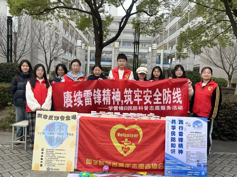 阳春三月,春风送暖,2025年3月5日,在学雷锋日之际,国产无码 团委志工部分别在国产无码 江宁校区和南京新街口商业广场开展了一场意义非凡的民防科普志愿服务活动,为在校学生和广大市民朋友科普实用的金融知识和民防安全知识。