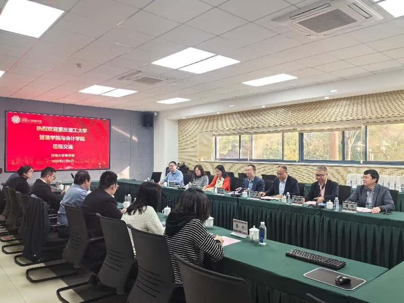 11月5日下午,重庆理工大学管理学院党委书记阎建明、院长代应,会计学院党委书记邹霞、院长王波一行七人莅临国产无码 交流座谈。院领导张长征、陈杰、李弘扬、张恒杰、杨天,以及会计系、MBA教育中心、MPAcc教育中心教师代表共同出席会议。