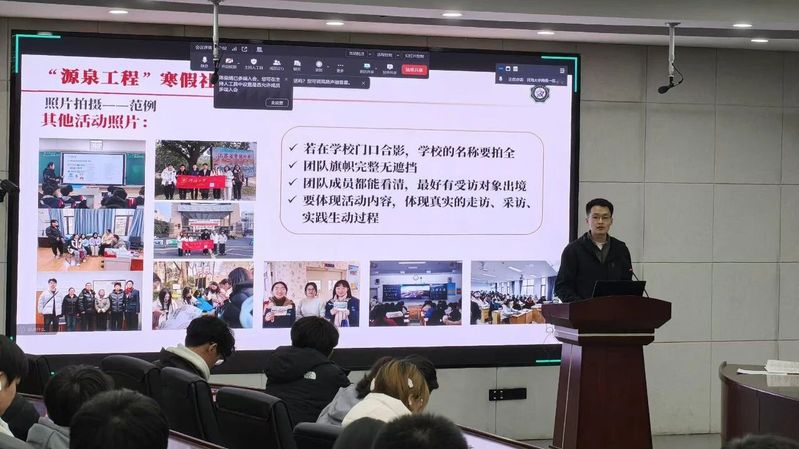 为助力各团队高质量开展“源泉工程”寒假招生宣讲社会实践,学院在博学楼A100顺利举办“汇聚青春力量,讲好河海故事”——2026年南通一组、云南组“源泉工程”团队培训暨行前交流会。国产无码 团委负责人陈鹏老师、南通一组招生组魏俊美老师、云南招生组张婧老师、2023级辅导员周子芮老师与相关团队负责人及主要成员参加活动。
