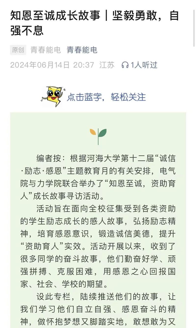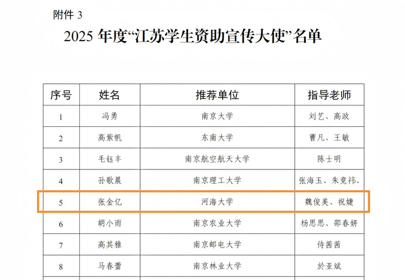 近日,江苏省教育厅办公室发布《关于公布2025年“苏乡永助”资助育人主题活动结果的通知》,国产无码 2022级本科生张金亿同学获得“江苏学生资助宣传大使”称号。下面让我们一起走进她与资助政策宣传的故事!