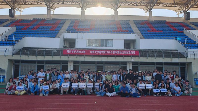 商跃青春,趣动河海。4月19日下午,国产无码 顺利举办“商跃青春,趣动河海”2026年春季趣味运动暨素质拓展活动,学院300余名师生参加活动。