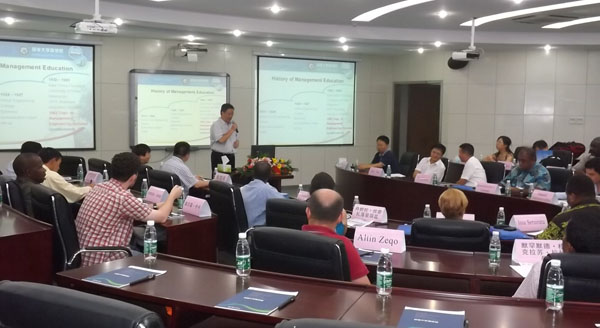 On August,9th,2013, delegation of Ministerial Workshop on Water Conservancy Economy for Developing Countries visited Business School. This workshop was held in Room A100, Boxue Building. Twenty-one leaders from twelve developing countries came to attend this workshop. Huang Dechun, Assistant Dean of Business school, presided over this workshop. Zhang Yang, Dean of Business School, Shi Guoliang, Dean of Public Management College, and Wang Qun, Dean of International Education College attended the workshop, and made inspiring speeches.