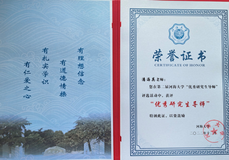 Adhere to the student-centered, respect the individual differences between students, keep the students' career planning and future development in mind, and cultivate new talents of the times with full work enthusiasm and solid work style. The graduate students under his guidance have won 2 excellent masters in Jiangsu Province, 4 excellent masters in Hohai University, and 2 national scholarships. After graduation, students work in banks, securities, government departments, universities and other institutions, contributing to the country's social and economic development.