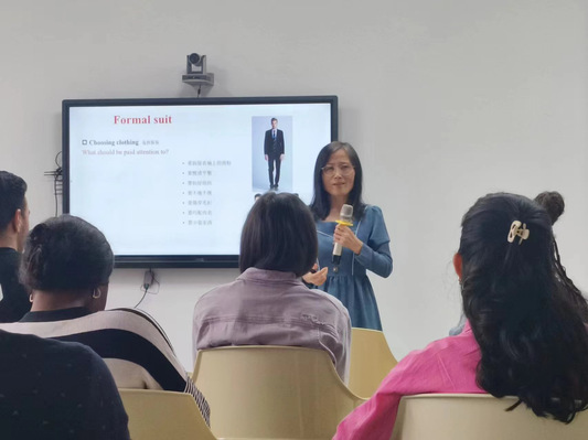 Professor Liu explained the connotation and application of business etiquette to the students in detail around appearance, dress, posture, handshake etiquette, etc. She first emphasized the importance of appearance etiquette, pointing out that in business situations, a person's dress, appearance, and manners will leave a deep impression on the other party, and proper dress, neat appearance, and confident manners are the keys to creating a professional image. Then, professor Liu started with the details of hair, face, eyes, ears, neck, legs, etc., and guided the students to pay attention to and optimize every detail to ensure that they can show their best selves in business situations. During the lecture, the students actively participated in the interaction, asking questions to the teacher about clothing and workplace etiquette, and the teacher answered patiently and meticulously.